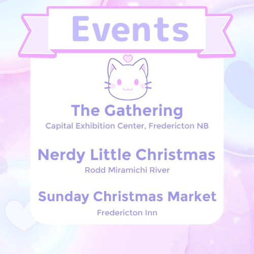I will be a vendor at AEX in Charlottetown PEI and Fredericton New Brunswick! -
