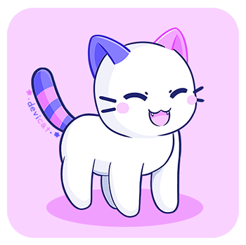 CandiCat is the official mascot of DeviCat and the star of her Twitch subscriber emotes! She has two forms: a pink, purple, and white space cat, and a kawaii magical anime girl. Though shy at first, once she warms up, she shows every flavor of personality—sweet, silly, and a little mischievous.